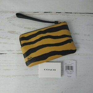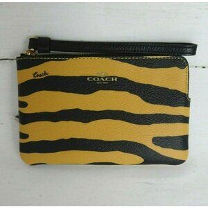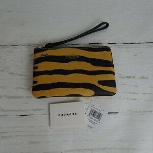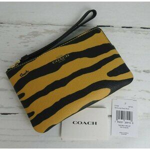 New Coach TIGER Corner Zip Wristlet Wallet Small Bag Coated Canvas Leather Logo