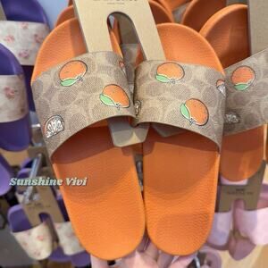 New Coach Women Udele Sport Slide Signature Canvas Fruit CAR29 Tan US 7