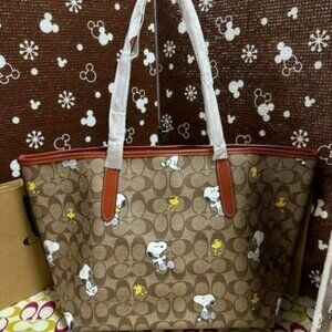 Stylish Coach tote with Snoopy design. Perfect for daily use. Adds charm to any outfit.