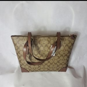 New Coach Zip Top Tote In Signature Canvas khaki nwt