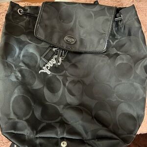 Chic black y2.k back pack with subtle pattern. Stylish and versatile design by Coach. Never used