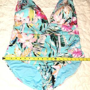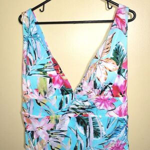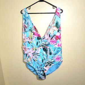 New Coastal Waves Turquoise Floral Tropical Swimsuit 3X