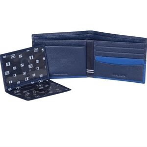 New Cobolt Blue Nautica Men's Bifold Leather Wallet | RFID Blocking