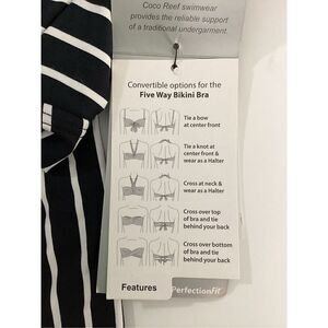 New. Coco Reef stripe 5-way tankini top. Coco Reef swimwear features bold prints and designs that are always sexy and flattering, without being tiny and skimpy. Coco Reef will give you comfort and coverage while still looking stylish. Show off your beautiful curves in a Coco Reef swimsuit. Get beach ready in this flattering convertible bandini swim top. Supportive contour foam-lined cups for a flawless silhouette. Maintain structured support thanks to built-in boning. Easily converts 5 different ways to achieve multiple looks. Self-tie back closure creates a customizable fit.