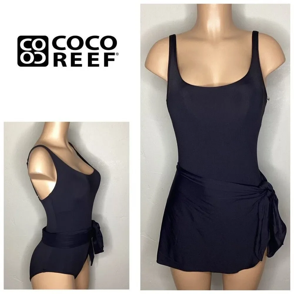New. Coco Reef black skirted one piece.