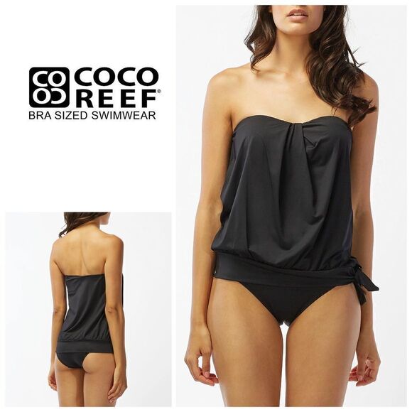 The Coco Reef Grace Blouson Bra Sized Bandeau Tankini is a fabulous and feminine strapless tankini top with stylish twist construction and a blouson body, it is as flattering as it is glamorous. This must-have features molded cups for shapely support and adjustable and removable straps for line-less tanning.
