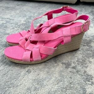 New Cole Haan Crystal Wedge Fuchsia Pink Strappy Sandals Barbie Summer Sz 8.5