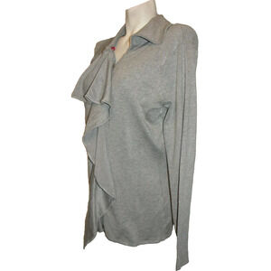 New Coletane Sweater Women's Size L Grey Ruffle Front Full Zip LS Cardigan Fancy