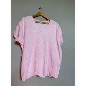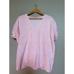 New Collection 100% Linen Pink V-Neck Blouse – Made in Italy SZ XL