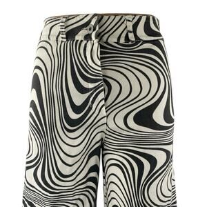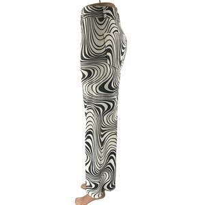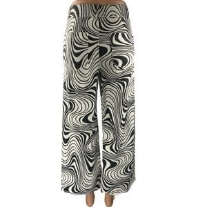 New Collection Black White Abstract High Rise Wide Leg Palazzo Trousers Pants S