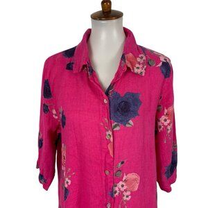 New Collection Linen Top One Size Pink Floral 34 Sleeve Boho Resort