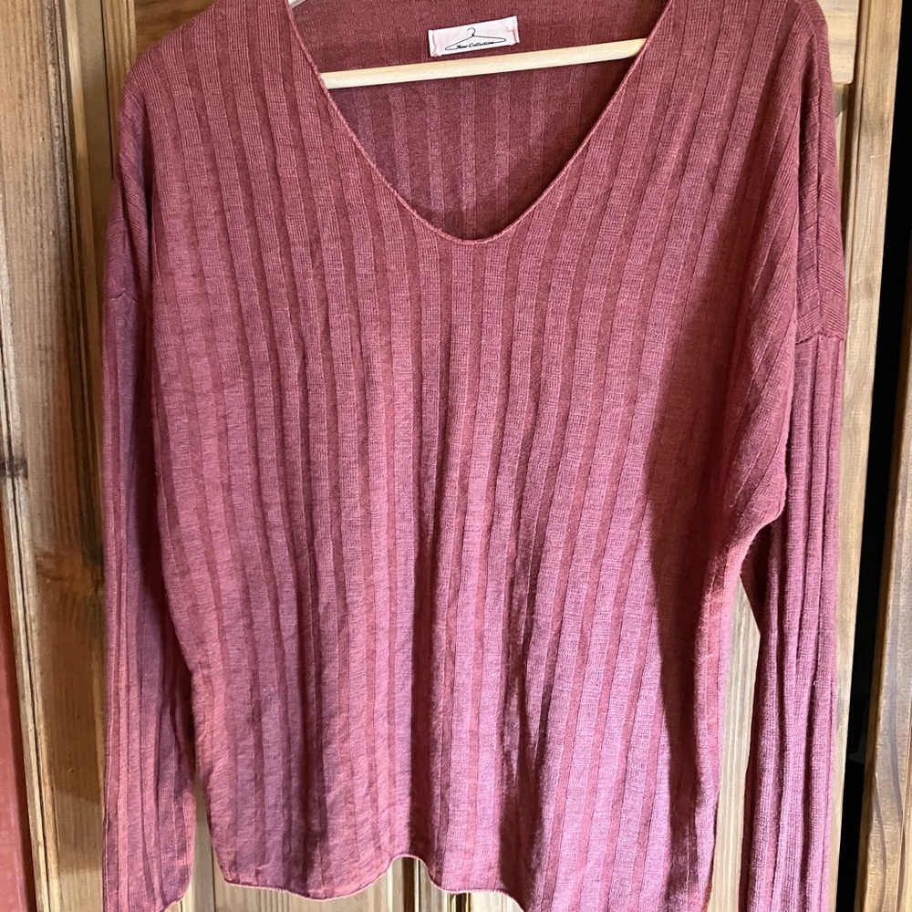 Chic ribbed V-neck top with long sleeves. Ideal for everyday style.