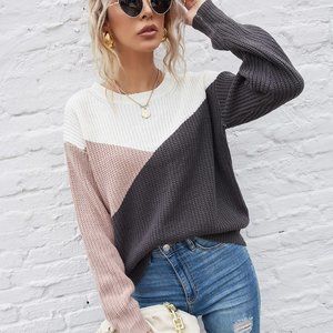 XS=2 • S=4 • M=6 • L=8/10 • XL=12 • XXL=14 Brand New Ships in 6-10 days Color: Multicolor Style: Casual Pattern Type: Colorblock Type: Pullovers Neckline: Round Neck Sleeve Length: Long Sleeve Sleeve Type: Drop Shoulder Length: Regular Fit Type: Regular Fit Fabric: Slight Stretch Material: Acrylic Composition: 100% Acrylic Care Instructions: Machine wash or professional dry clean Sheer: No