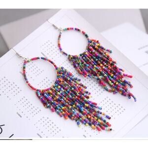 New Colorful Long Beaded Dangle Tassel Hook Earrings Multi Colors A0104