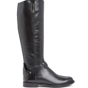 Refined equestrian inspired details adorn a tall leather boot that goes with everything.