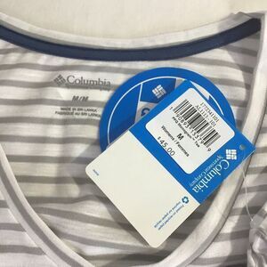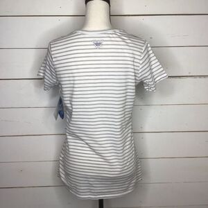 New Columbia PFG Monogram Tee, Short Sleeve White/Columbia Grey Stripe, Women's Medium MSRP $45