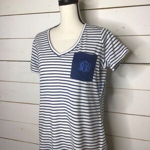 New Columbia PFG Monogram Tee, Short Sleeve White/Columbia Navy Stripe, Women's Medium MSRP $45