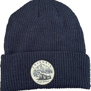 New Columbia Spring Grove Beanie Hat! Grayish Blue With Big Columbia Patch