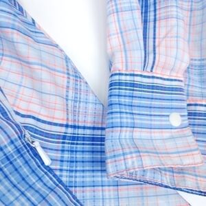New Columbia Super Tamiami Blue Pink Plaid Omni Shield Hidden Pockets Sh…
