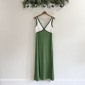 New Commense Satin Contrast Trim Colorblock V Neck Maxi Dress Smal