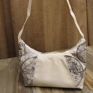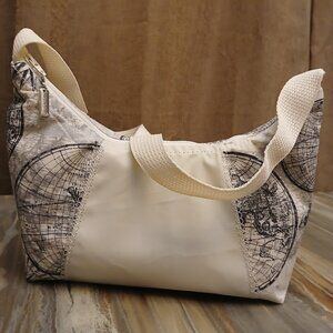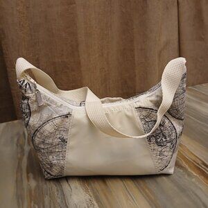 New Compass Globe Top handle Shoulder Bag Purse Ivory Gray Crescent Baguette