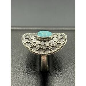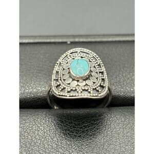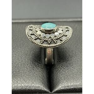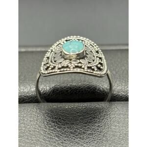 New Condition Sterling Silver Bali Style Turquoise Ring Size 7