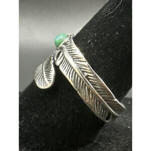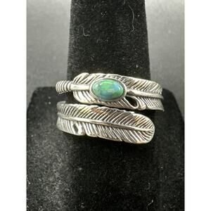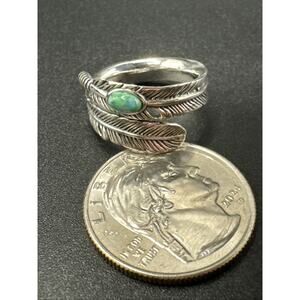 New Condition Sterling Silver Bypass Feather Turquoise Ring Size 7 Adjustable