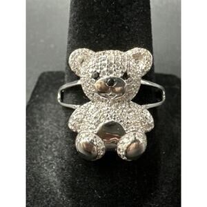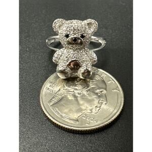 New Condition Sterling Silver CZ Encrusted Teddy Bear Ring 925 Size 6