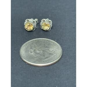 New Condition Sterling Silver Genuine Citrine Stud Earrings 925 5MM