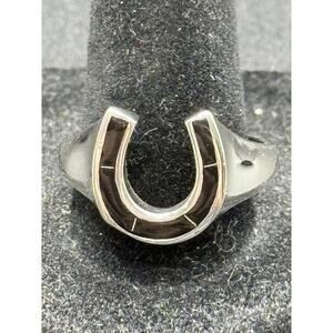 New Condition Sterling Silver Horseshoe Onyx Ring Size 12.00