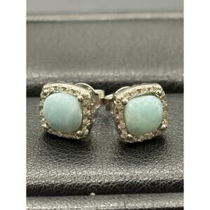 New Condition Sterling Silver Larimar Cubic Zirconia Stud Earrings