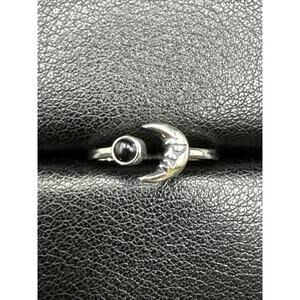 New Condition Sterling Silver Onyx Crescent Moon Ring 925 Size 7
