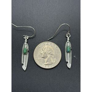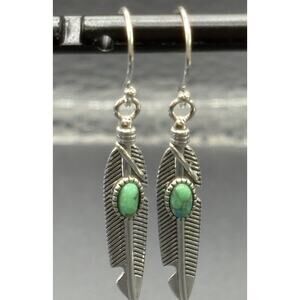 New Condition Sterling Silver Turquoise Feather Dangle Earrings 925 X15