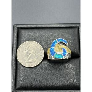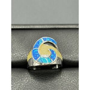 New Condition Two Tone Lab Blue Opal Ring Size 7