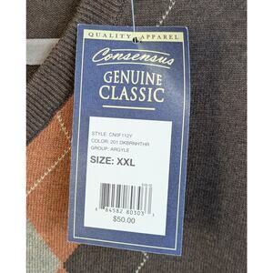 New Consensus Genuine Classic Mens Brown Tan Rust Argyle Cotton Sweater Size 2XL