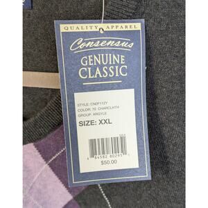 New Consensus Genuine Classic Men's Gray Purple Argyle Cotton Sweater Size 2XL