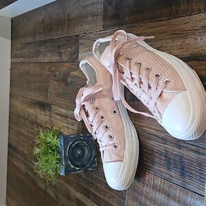 New Converse All☆Star Women's Light Pink Textured Low-Top Sneakers.