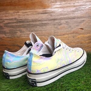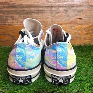 Converse has been on a hot streak of collaborations, crazy designs, and modern looks on classic styles. The Chuck 70 Ox "Marble" is just one of the latest desingns the brand has released. A colorful screenprint gives the shoes a painted marble effect.