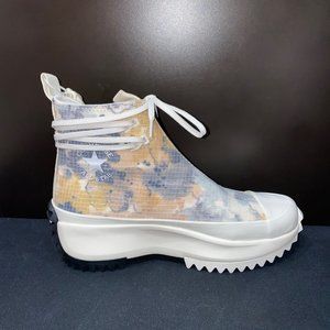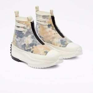 Run Star Hike w/ faded paint print in soft, neutral color. Redesigned closure makes on and off easier than ever, with a contrast zipper front and center. Secured, wraparound laces help your style stand out, while a molded platform & exaggerated tread take you higher
