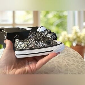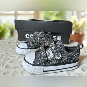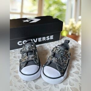 New Converse Toddler CTAS 2V OX Easy On Shimmer Sneakers Shoes