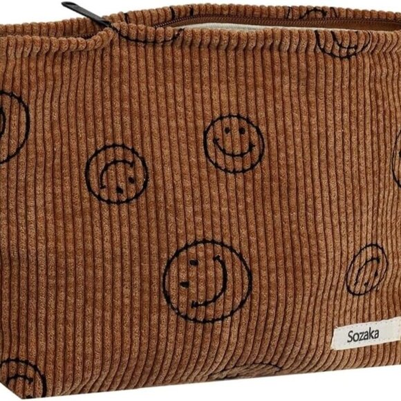 New Corduroy Smiley Face Makeup Pouch – Small Cosmetic Organizer Bag