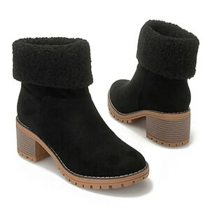 New in Box Corkys Black Sherpa Heeled Boots. These adorable sherpa trimmed boots can be worn folded down as pictured or flipped up as a taller boot!
