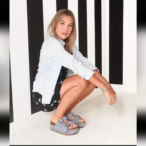Style: Boho Faux Suede Leather Vegan Similar to Free People Rule Breaker but are Corkys Brand Platform Chunky Sandals On Trend Blogger Favorite Wannabe Trending Tan Brown Bronze Tone Buckle Studded Heel Similar to Birkenstock Freepeople Nailhead Like the Intentionally Blank Rulebreaker but are Corkys brand Hippie Bohemian Cooper Boutique Corky's Platform Shoes Slide Sandals