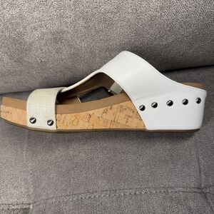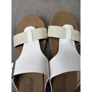 New Corkys Top Secret Wedge Sandals Size 7 White Slip On Adjustable Buckle