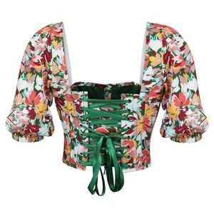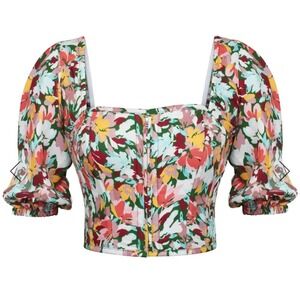 New Corset Story Fern Floral Explosion Cropped Corset with Puff Sleeves $259.50