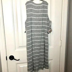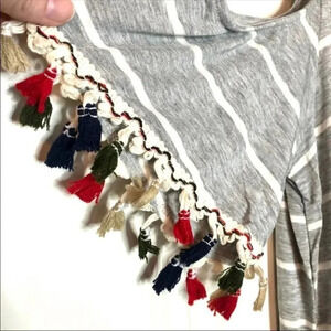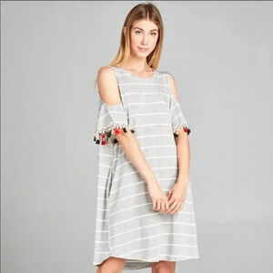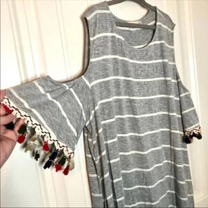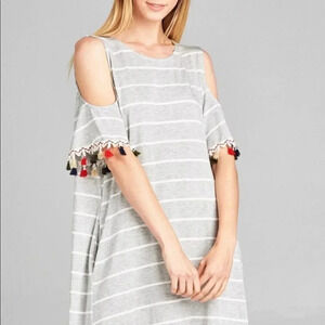 New Cotton Bleu Striped and Multi colored Tassels Cold Shoulder Dress Size M