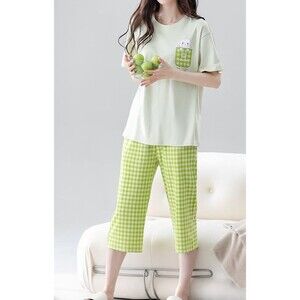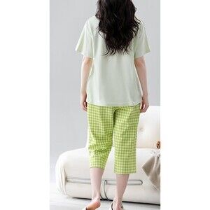 New Cotton Women Capri Pajama Set 2 Pcs Short Sleeve Top Capris pants Sleepwear
