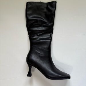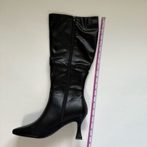 New Coutgo black knee high leather boots square toe kitten heel size 8.5