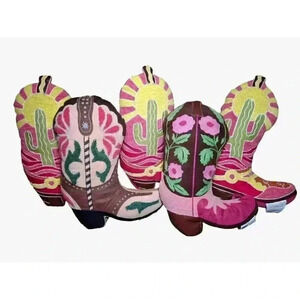 New Cowgirl Western Boot Decor Throw Pillow Brown & PINK Floral