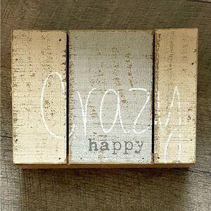 New! “Crazy Happy” Light-Brown Wooden Home Decor/Sign. 7 in. x 8.5 in.